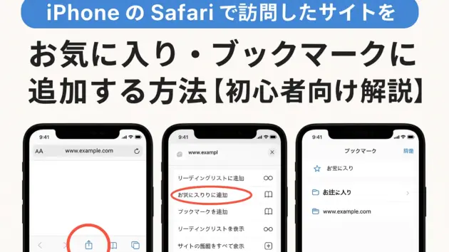 SIMなしiPhone iPhoneのSafariで訪問したサイトをお気に入り・ブックマークに追加する方法【初心者向け解説】 iPhoneのSafariで訪問したサイトをお気に入り・ブックマークに追加する方法を紹介します。 2025.09.28 SIMなしiPhone